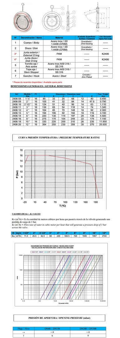 Válvula de retención a clapeta Inoxidable DIN PN 16